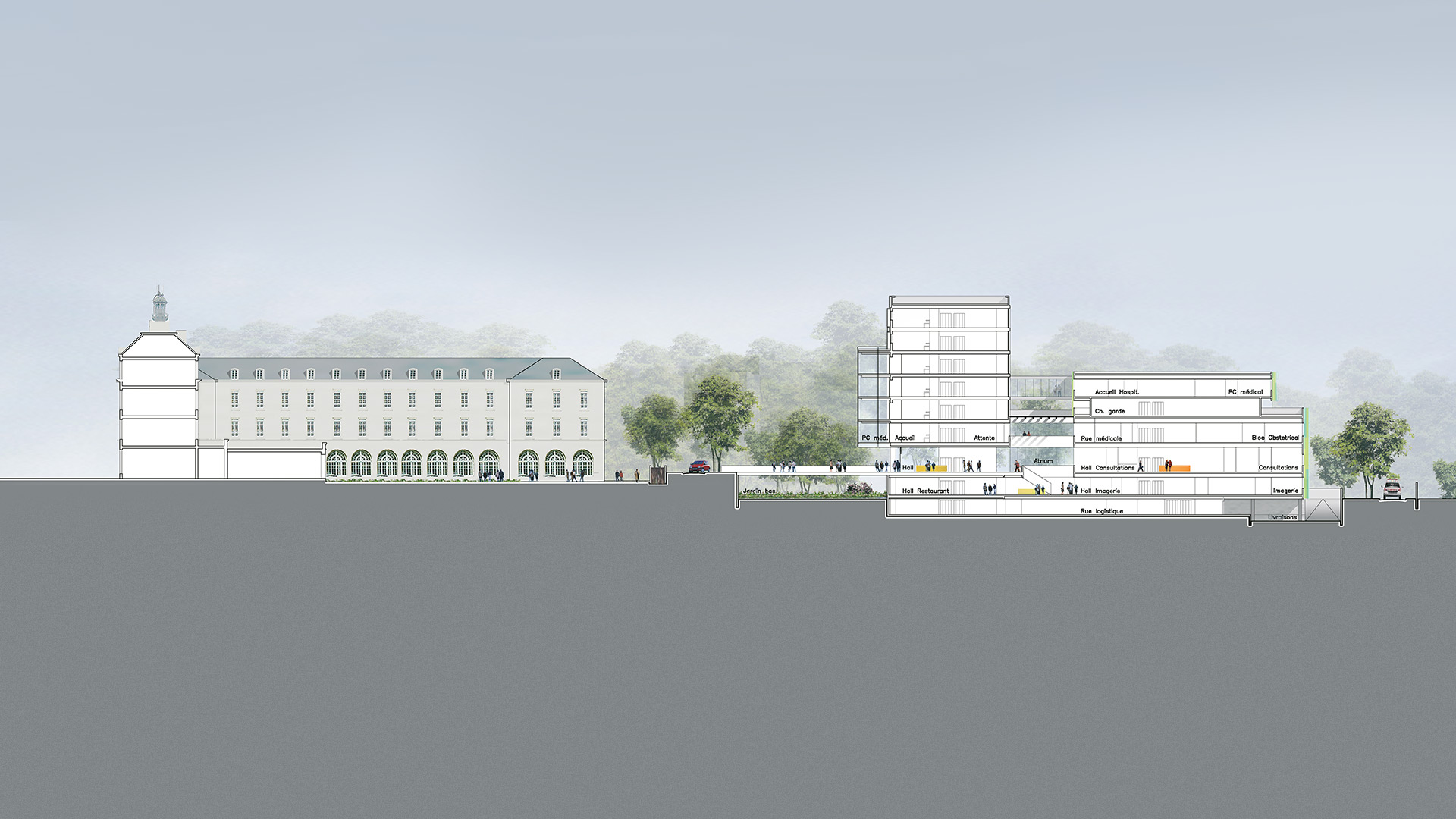 The arrangement is particularly carefully thought out, linking all the services offered on this hospital campus. The new building emerging from the site is creating a far-reaching image for the hospital.